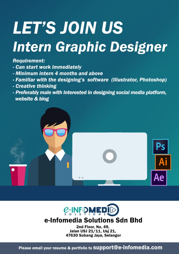 O Xrhsths E Infomedia Solutions Sdn Bhd Sto Twitter For Those Who Are Looking For Internship Placement In Graphic Designer You Can Send Your Resume And Portfolio To Support E Infomedia Com Sebarkerja Lamankerja Vacanciesmy